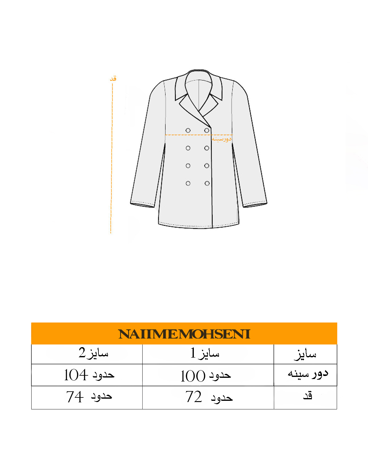 قد سایز 1 حدود 72
